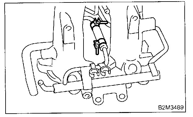 2. Tighten bolt which installs fuel pipes on intake manifold.