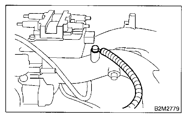 8. Tighten bolt which installs injector pipe on intake manifold.