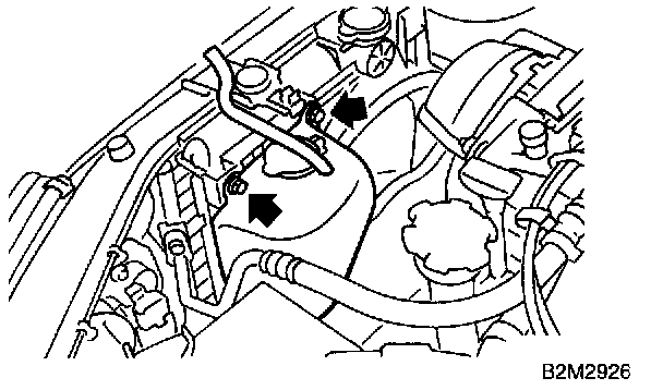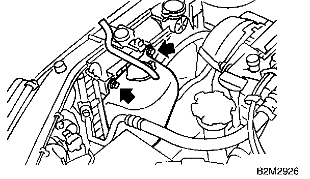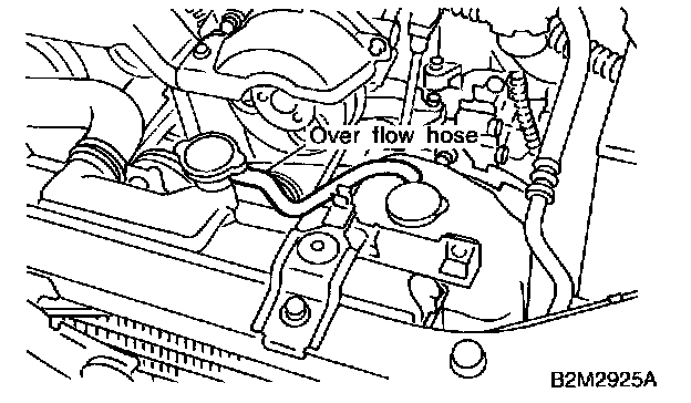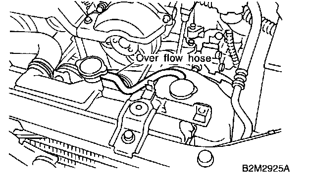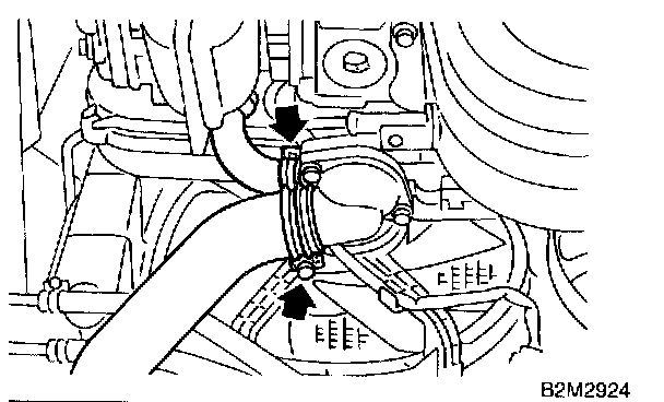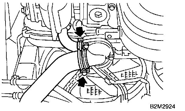 6) Disconnect radiator outlet hose and heater hose from water pump.
