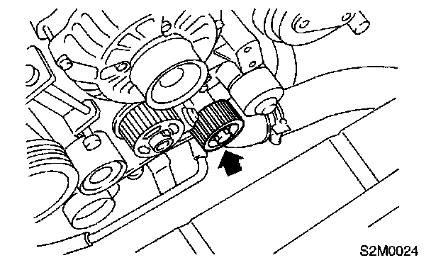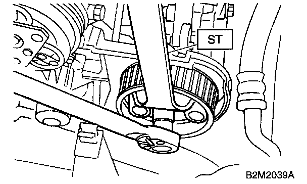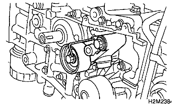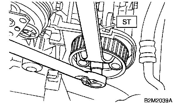 6) Install automatic belt tension adjuster which tension rod is holded with pin.