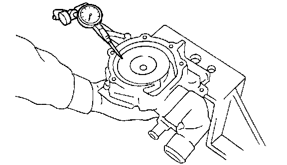 3) Using a dial gauge, measure impeller runout in thrust direction while rotating the pulley.