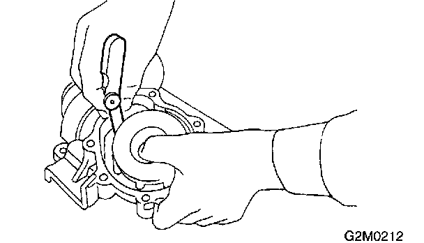 5) After water pump installation, check pulley shaft for engine coolant leaks. If leaks are noted, replace water pump assembly.