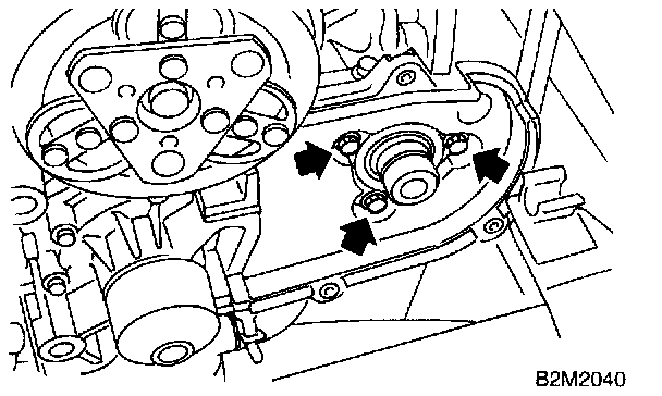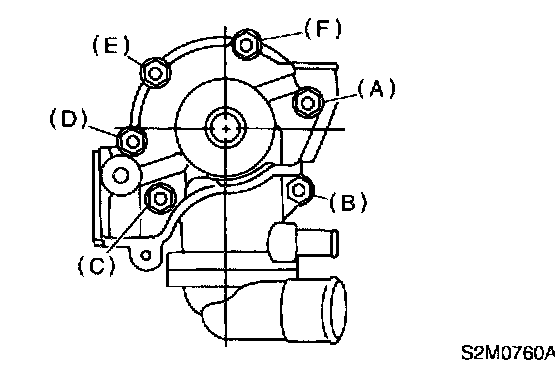 ^ When installing water pump, tighten bolts in two stages in alphabetical sequence as shown in figure.