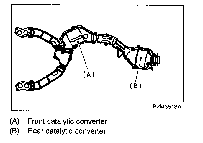 REMOVALThe front and rear catalytic converter and center exhaust pipe are integrated into one unit. Therefore, the removal and installation procedures are the same as the those for the front catalytic converter.