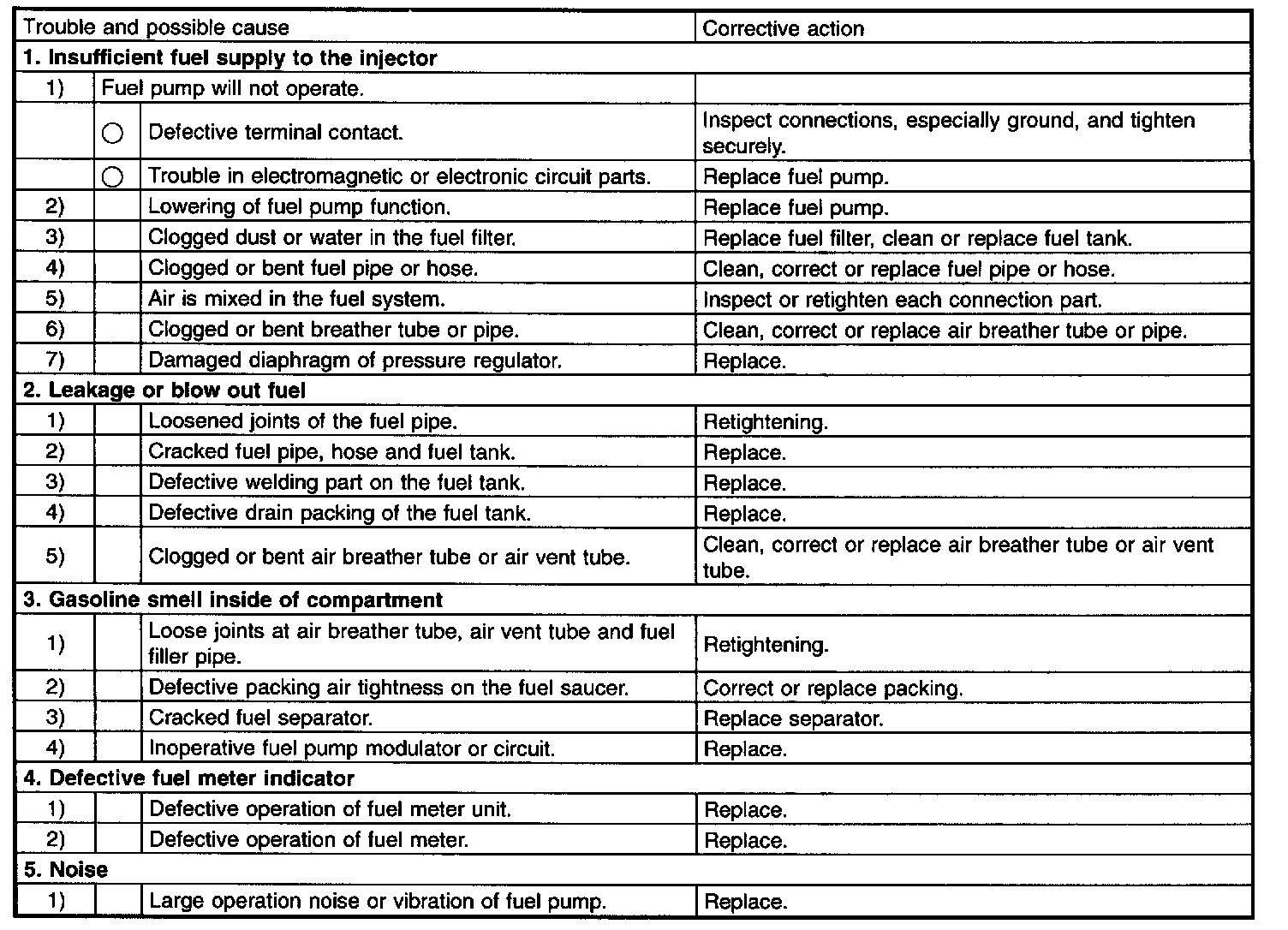 When water condensation is notched in the fuel filter, drain water from both the fuel filter and fuel tank or use a water removing agent (or antifreeze solution) in the fuel tank.