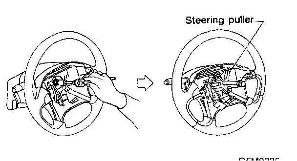 4. Remove steering wheel nut, then draw out steering wheel from shaft using steering puller.