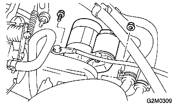 2. Remove bolt which installs upper side of starter.