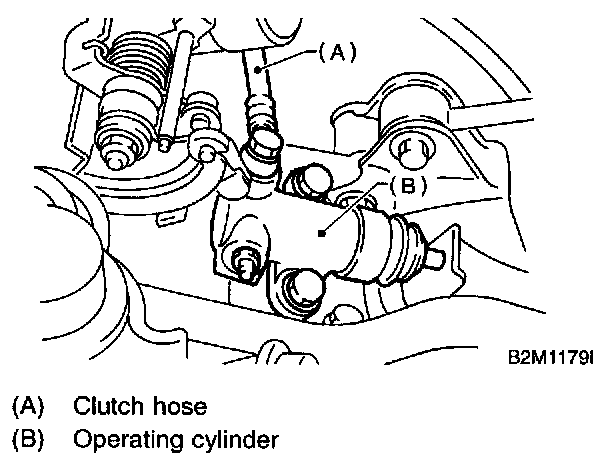 8. Install operating cylinder. (2500 cc M/T vehicles)