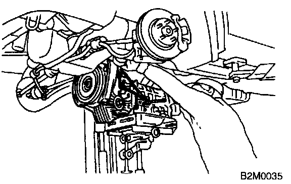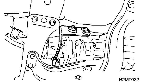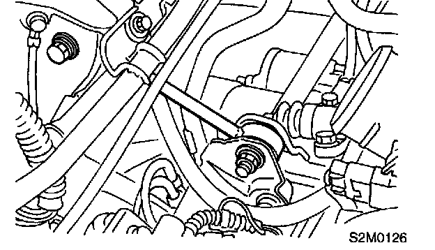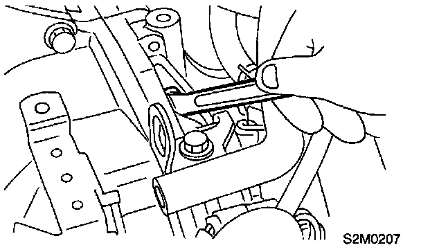 6. Tighten bolt which holds upper side of transmission to engine.