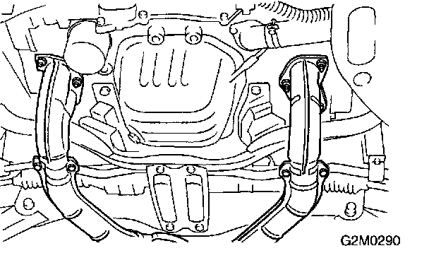 4. Remove nuts which install front exhaust pipe onto engine.
