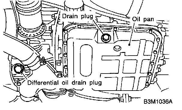 16. Drain ATF to remove ATF drain plug. (A/T vehicles)