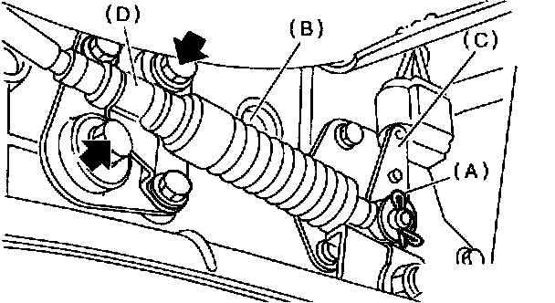 7. Attach cable clamp (D) to transmission case with the bolts.