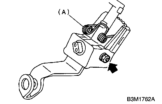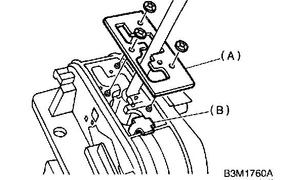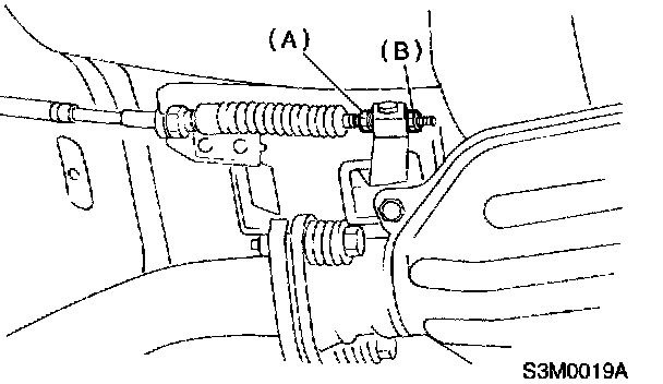 6. Pass cable (B) through selector arm pin and then connect it using a washer and snap pin (A).