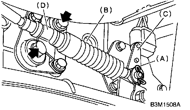 4. Remove cable clamp (D) from transmission case.