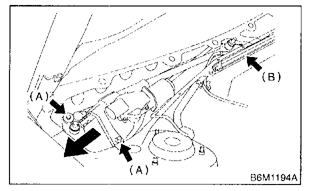 2. Disconnect electric connector , and remove motor attaching bolts (A) and nut (B).