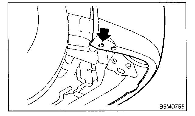 4. Turn over the front mud guard of the front portion and then remove bolt.