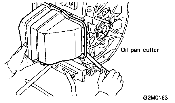 c) Insert a oil pan cutter blade between cylinder block-to-oil pan clearance and remove oil pan.