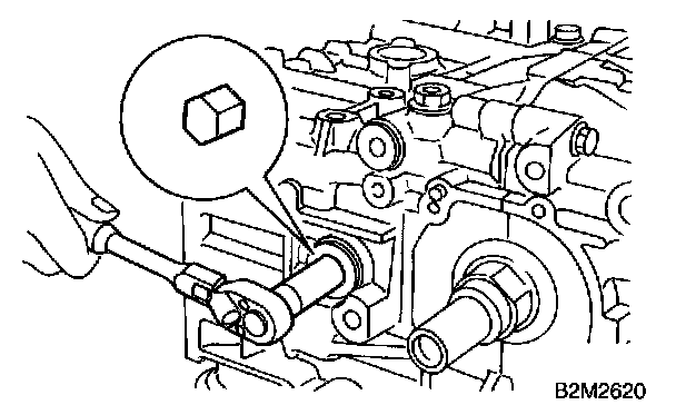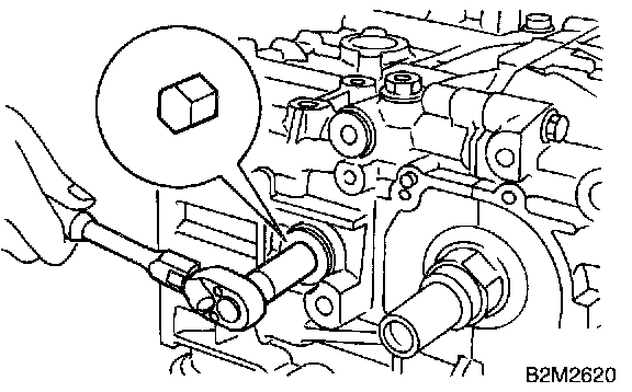 6) Back off bolts which connect cylinder block on the side of #1 and #3 cylinders two or three turns.