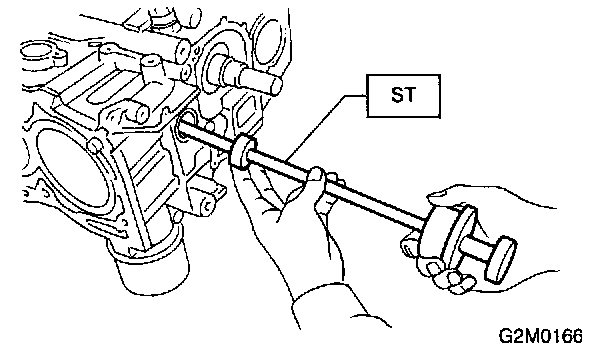 a) Discard front oil seal after removal. Replace with a new one using ST.