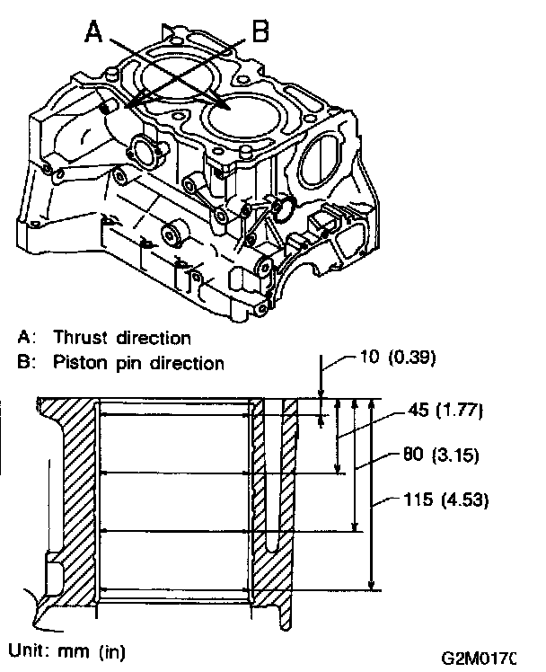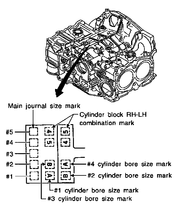 1) The cylinder bore size is stamped on the cylinder block's front upper surface.