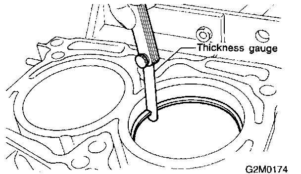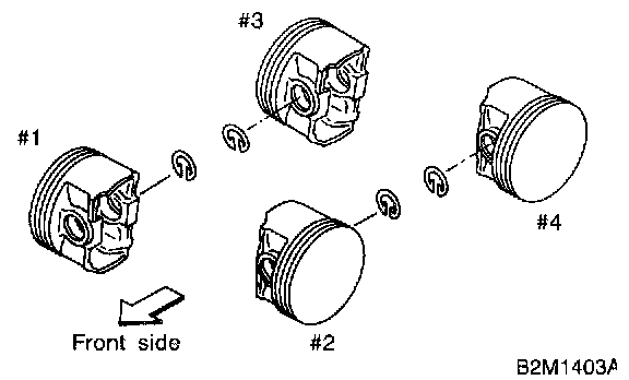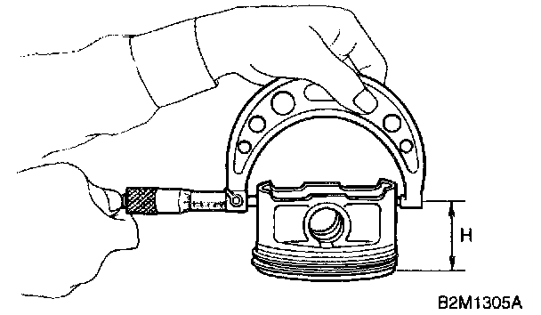 3) When piston is to be replaced due to general or cylinder wear, determine a suitable sized piston by measuring the piston clearance.
