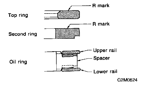 CAUTION: Arrange the removed piston rings in good order to prevent confusion.