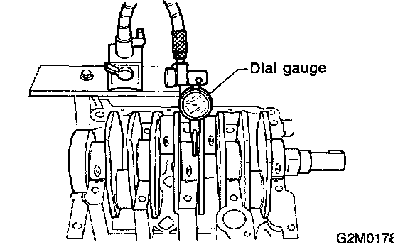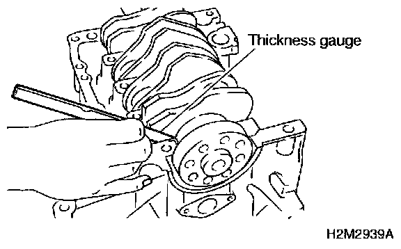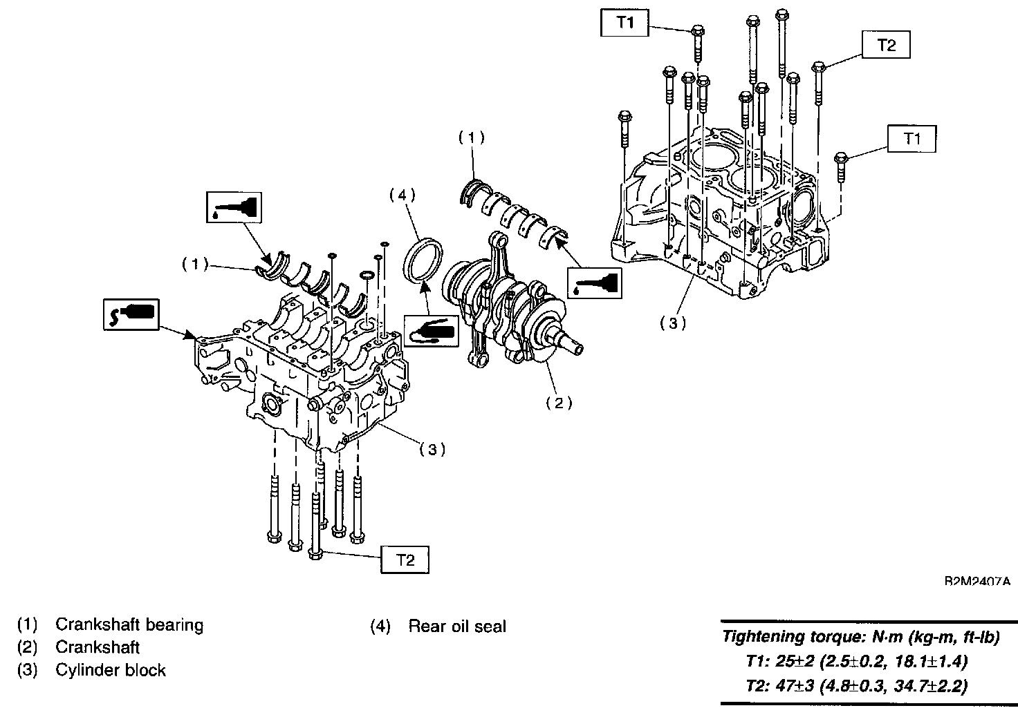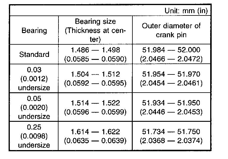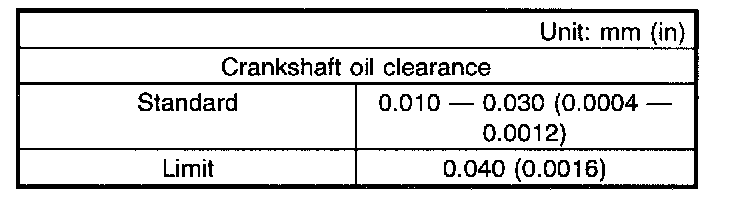 CAUTION: Remove oil in the mating surface of bearing and cylinder block before installation. Also apply a coat of engine oil to crankshaft pins.