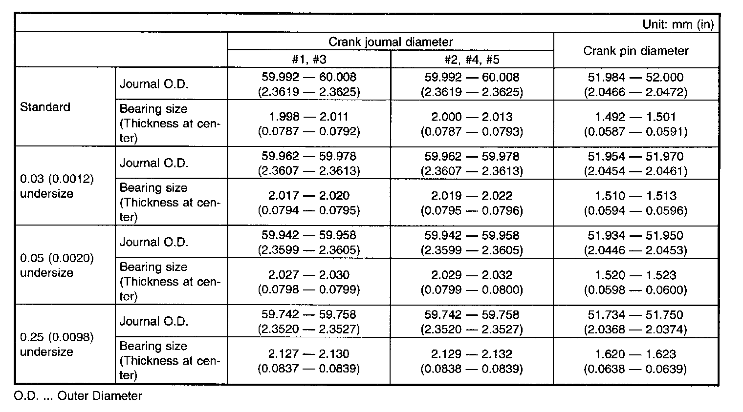 99.975 - 99.985 mm (3.9360 - 3.9364 inch)