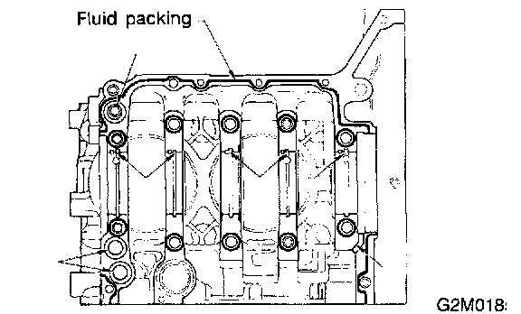 b) Apply fluid packing to matching surface of oil pump.