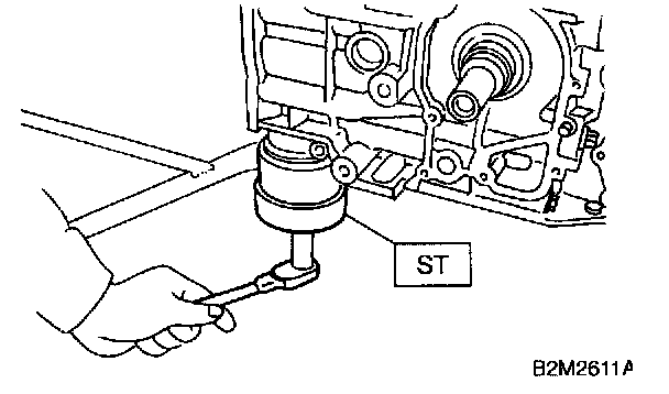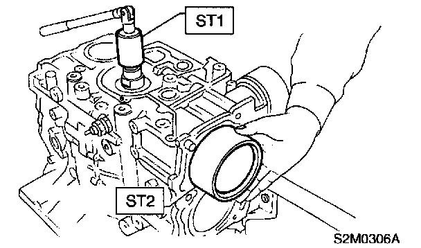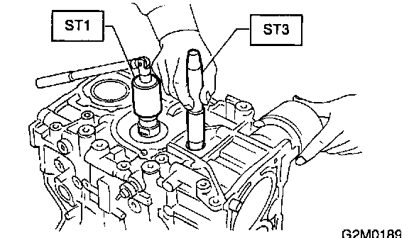 1) Install ST to cylinder block, then install crankshaft bearings.