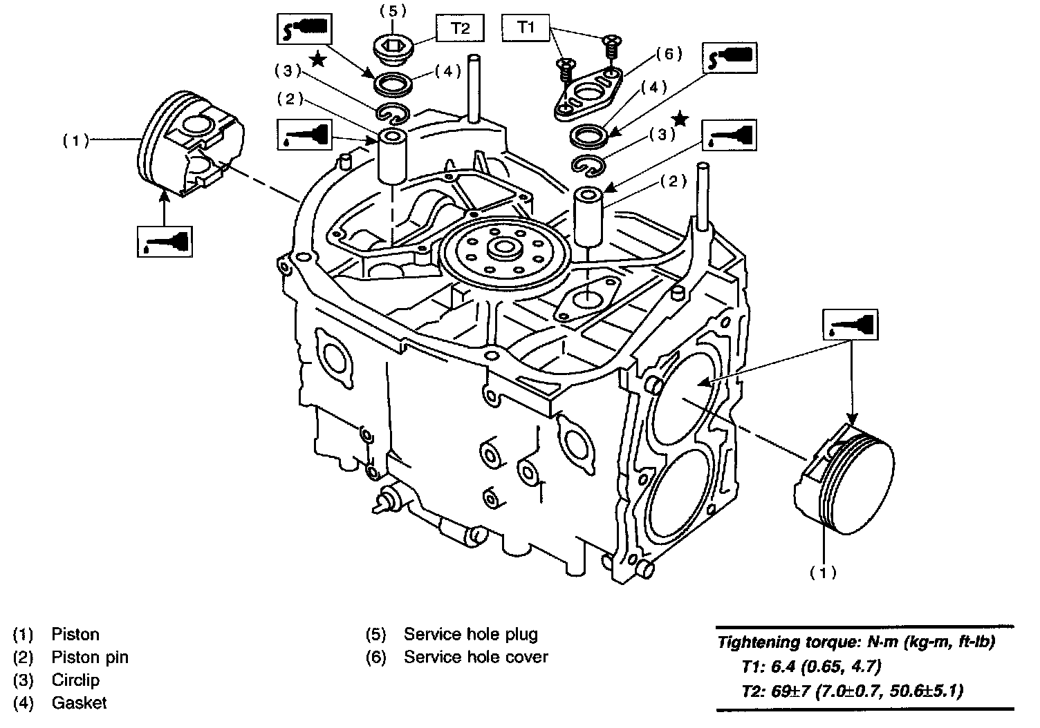 Tightening torque: 6.4 Nm (0.65 kg-m, 4.7 ft. lbs.)