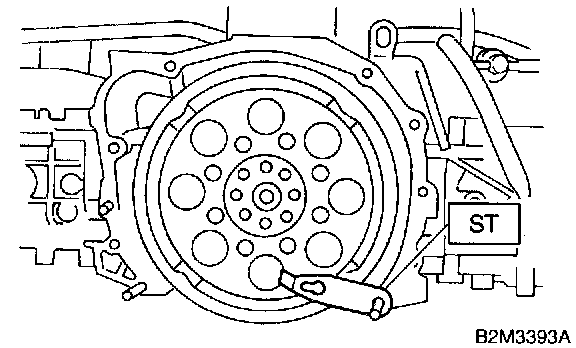 7) Install flywheel or drive plate. To lock crankshaft, use ST.