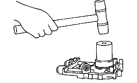 6) While tapping cylinder head with a plastic hammer, separate it from cylinder block.