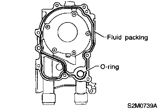 CAUTION: Do not allow fluid packing to jut into O-ring grooves, oil passages, bearing grooves, etc.