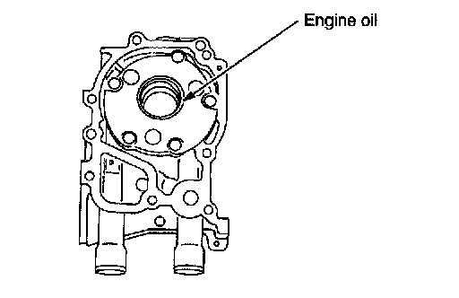 ^ Align flat surface of oil pump's inner rotor with crankshaft before installation.