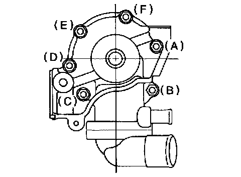 ^ When installing water pump, tighten bolts in two stages in alphabetical sequence as shown in figure.