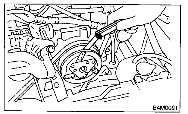 3. Check that clearance between drive plate and pulley over the entire perimeter is within specifications.