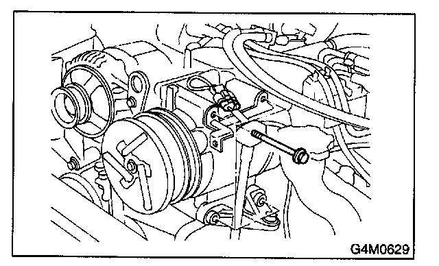 1. Remove bolts which secure compressor.