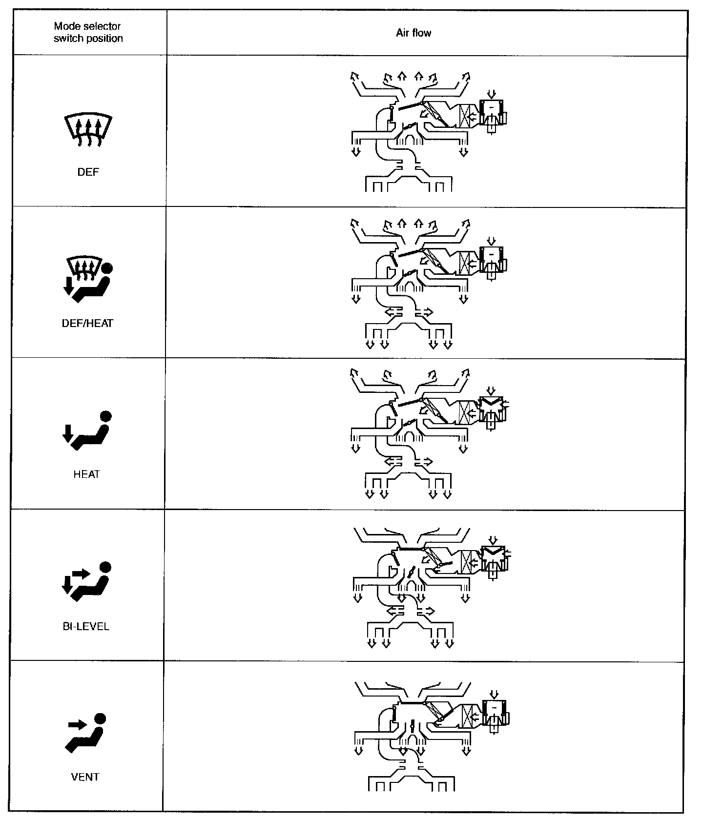 Mode Selector Switch and Air Flow: