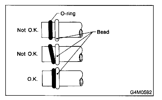 2. Visually inspect the O-ring surface, the O-ring mating surface, the threads and the connection points. If a defective part is found, replace it. The O-ring must sit square against the tube bead. If necessary, slide the O-ring into proper position with clean hands.