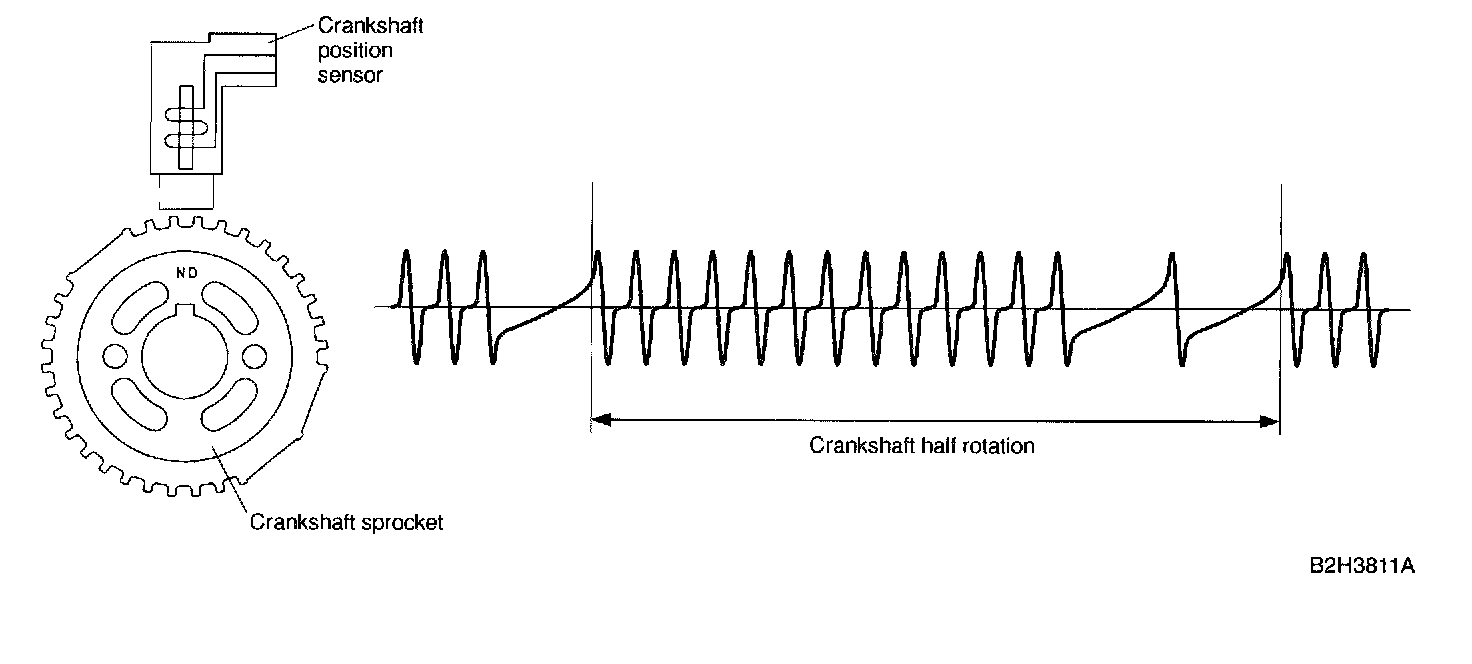 - Crankshaft rotation causes these protrusions to cross the crankshaft position sensor so that magnetic fluxes in the coil change with the change in air gap between the sensor pickup and the sprocket. The change in air gap induces an electromotive force which is transmitted to the ECM.