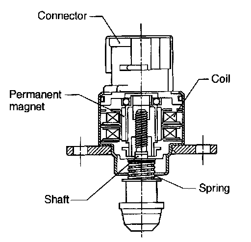 - The idle air control solenoid valve is a "stepping motor" type solenoid valve which consists of coils, shaft, permanent magnet, spring and housing. The housing is integral with the throttle body.