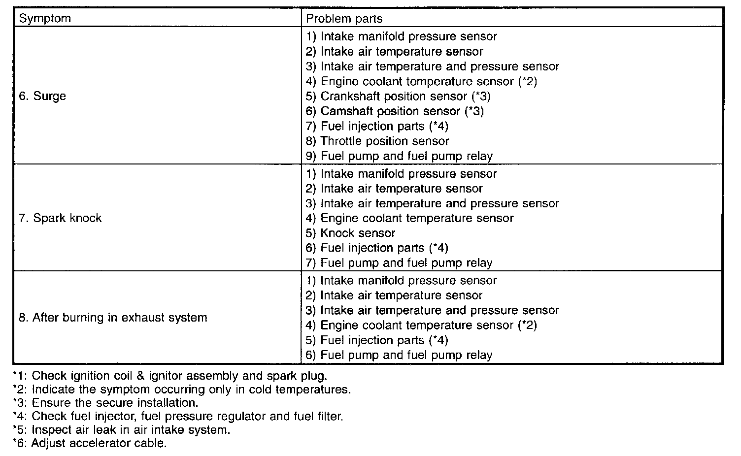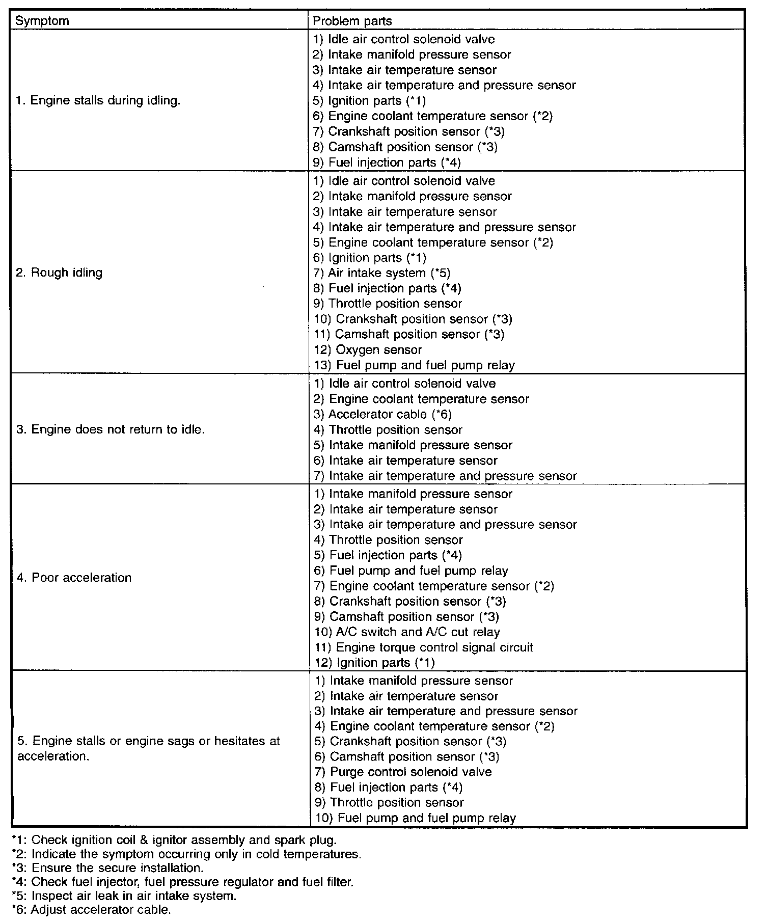 A: GENERAL DIAGNOSTICS TABLE WITH NON-CONFORMITY SYMPTOM FOR ENGINE