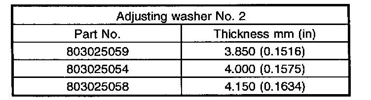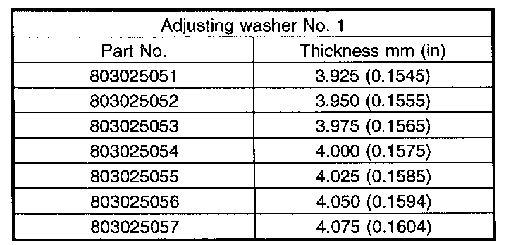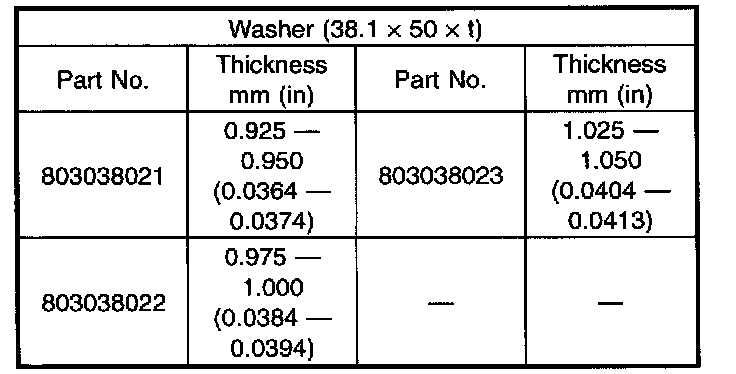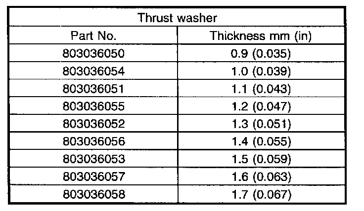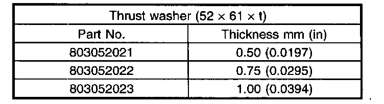 Thrust washer (52 x 61 x t) to ball bearing side clearance: 0.05 - 0.30 mm (0.0020 - 0.0118 inch)