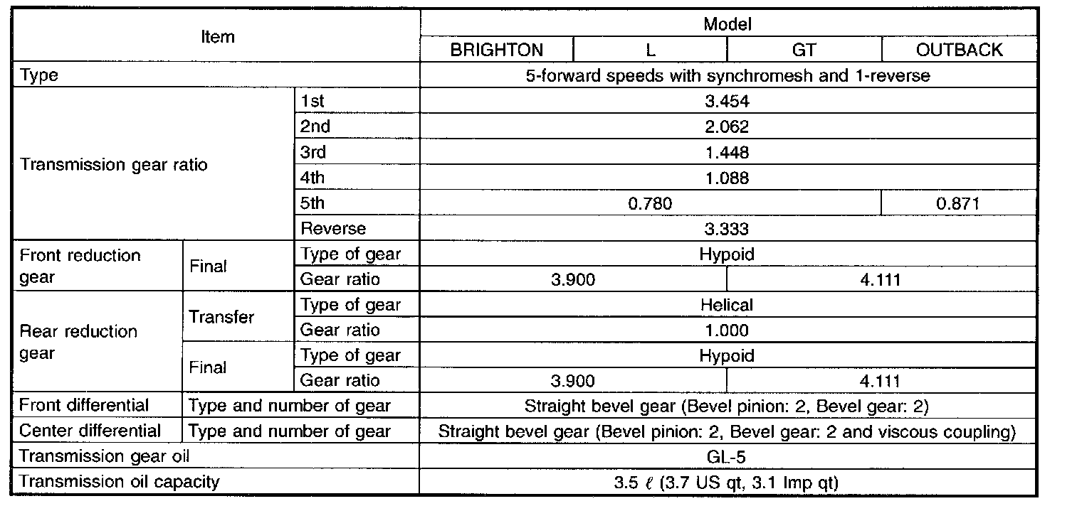 Hypoid gear backlash: 0.13-0.18 mm (0.0051-0.0071 in)