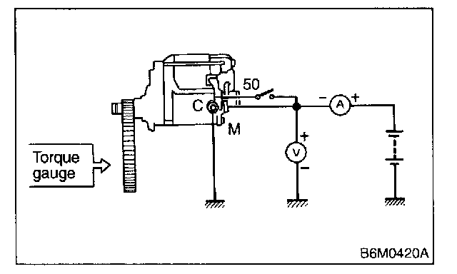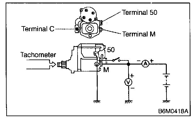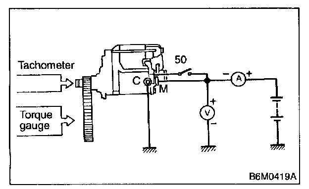 The starter is required to produce a large torque and high rotating speed, but these starter characteristics vary with the capacity of the battery. It is therefore important to use a battery with the specified capacity whenever testing the starter.