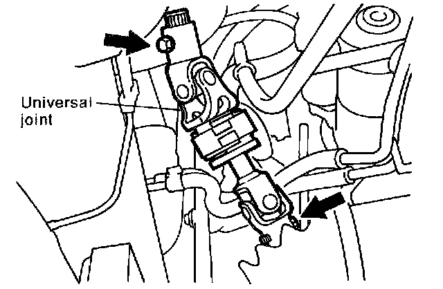 1. When steering wheel free play is excessive, disconnect universal joint of steering shaft and check it for any play and yawing torque (at the point of the crossing direction). Also inspect for any damage to sealing or worn serrations. If the joint is loose, retighten the mounting bolts to the specified torque.