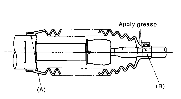 NOTE: Rotate (B) position of gearbox boot against twist of it produced by adjustment of toe-in, etc.