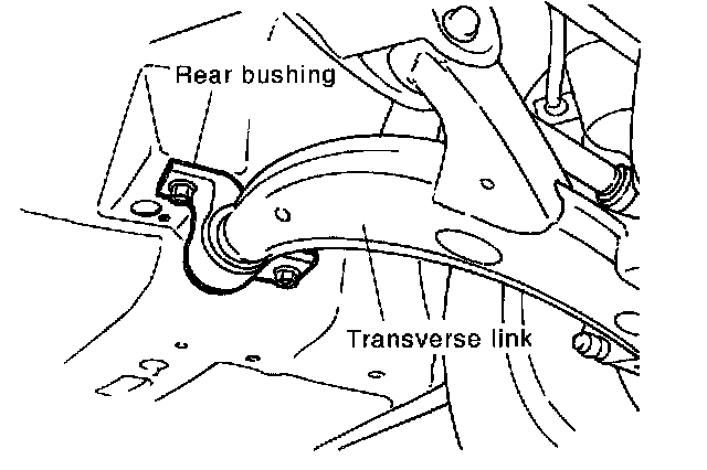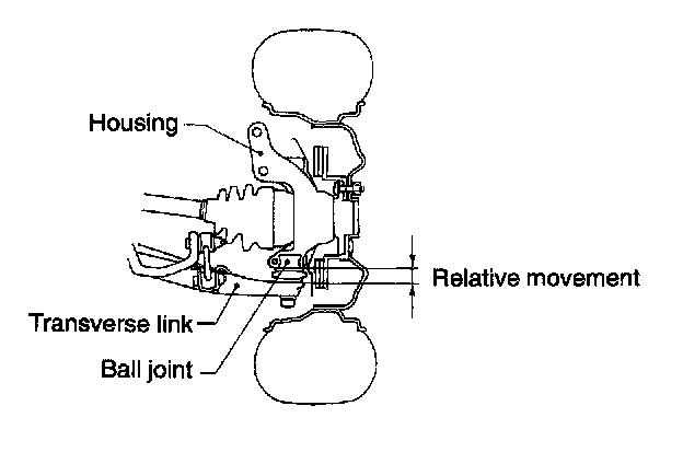 3. Next, grasp end of transverse link and move it up and down. Relative movement between housing and transverse link boss indicates ball joint may be excessively worn.