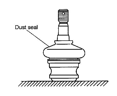 Inspect every 25,000 km (15,000 miles) or 12 months, whichever occurs first. Visually inspect ball joint dust seal. If it is damaged, remove transverse link. And measure free play of ball joint.